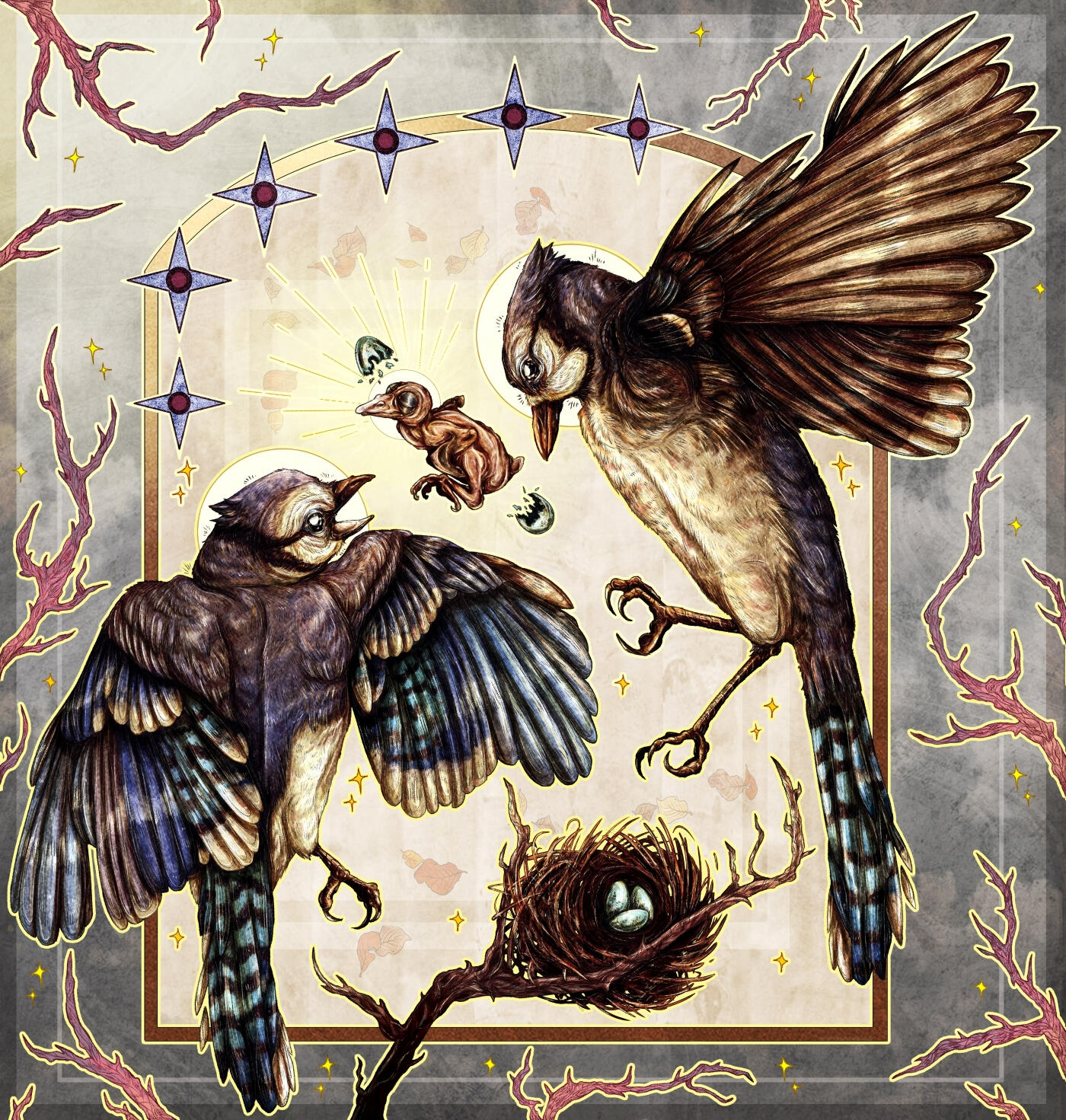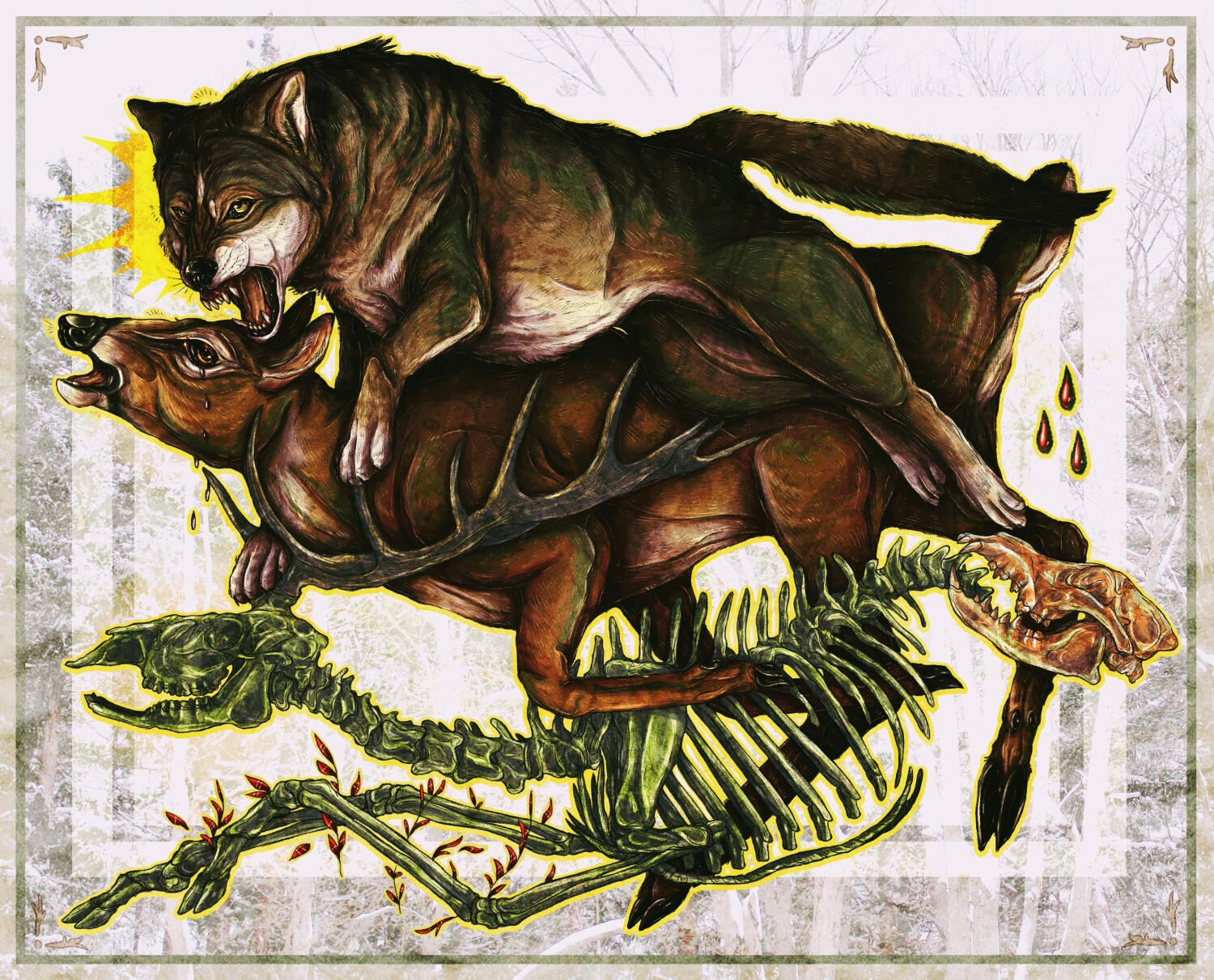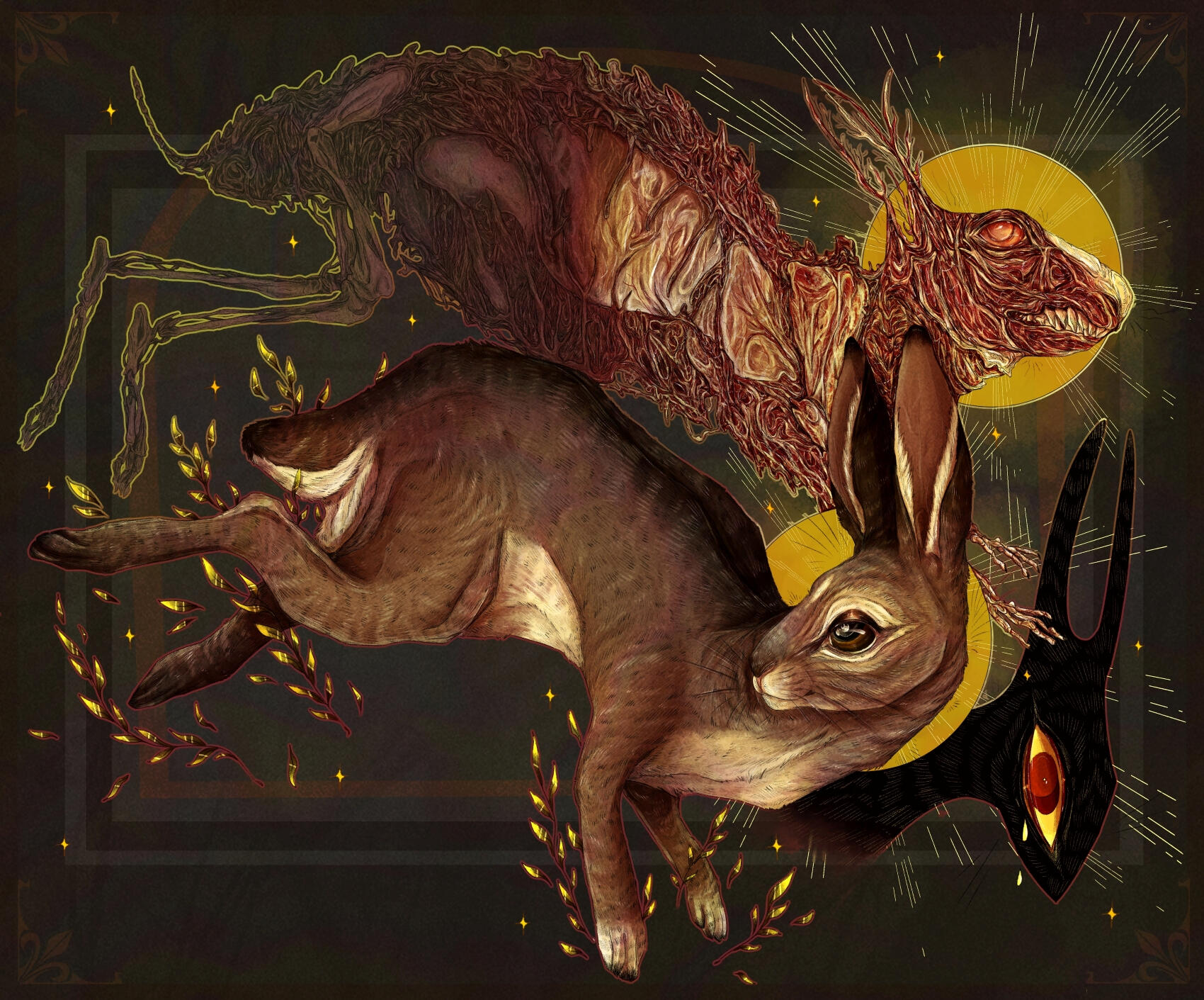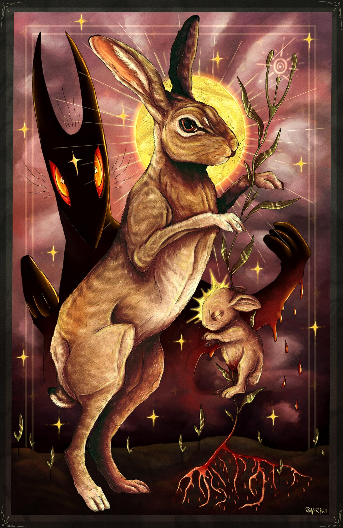 River Biggs is a multidisciplinary artist living in Upstate NY whose work depicts nature and the beings that inhabit it. He prefers to have animals as the center of his artwork, depicting their anatomical uniqueness and spirit. River has a closeness with native animals that he encounters outside every day, and has an interest in drawing them. Nature is the driving force for him, and is always what is on the forefront of his mind when creating artwork. River enjoys creating what seems to be a scene frozen in time, with specific elements such as arches and various shapes. He enjoys combining the contrast of simplicity and realism. And yes, he is very connected to rabbits.